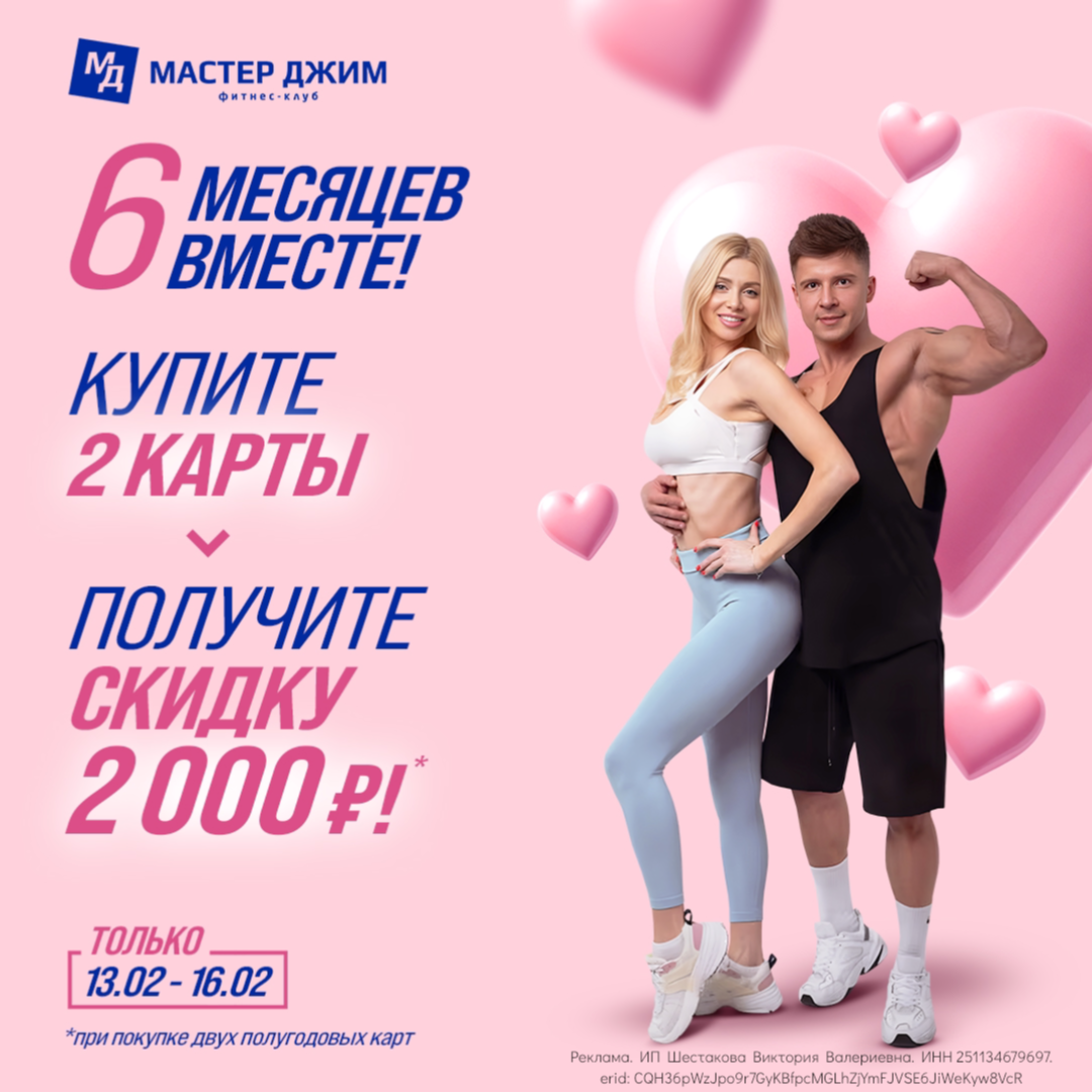 Приходите ВМЕСТЕ, покупайте абонементы на 6 МЕСЯЦЕВ безлимитного фитнеса, и каждый из вас получит СКИДКУ 1000₽ на свою карту!