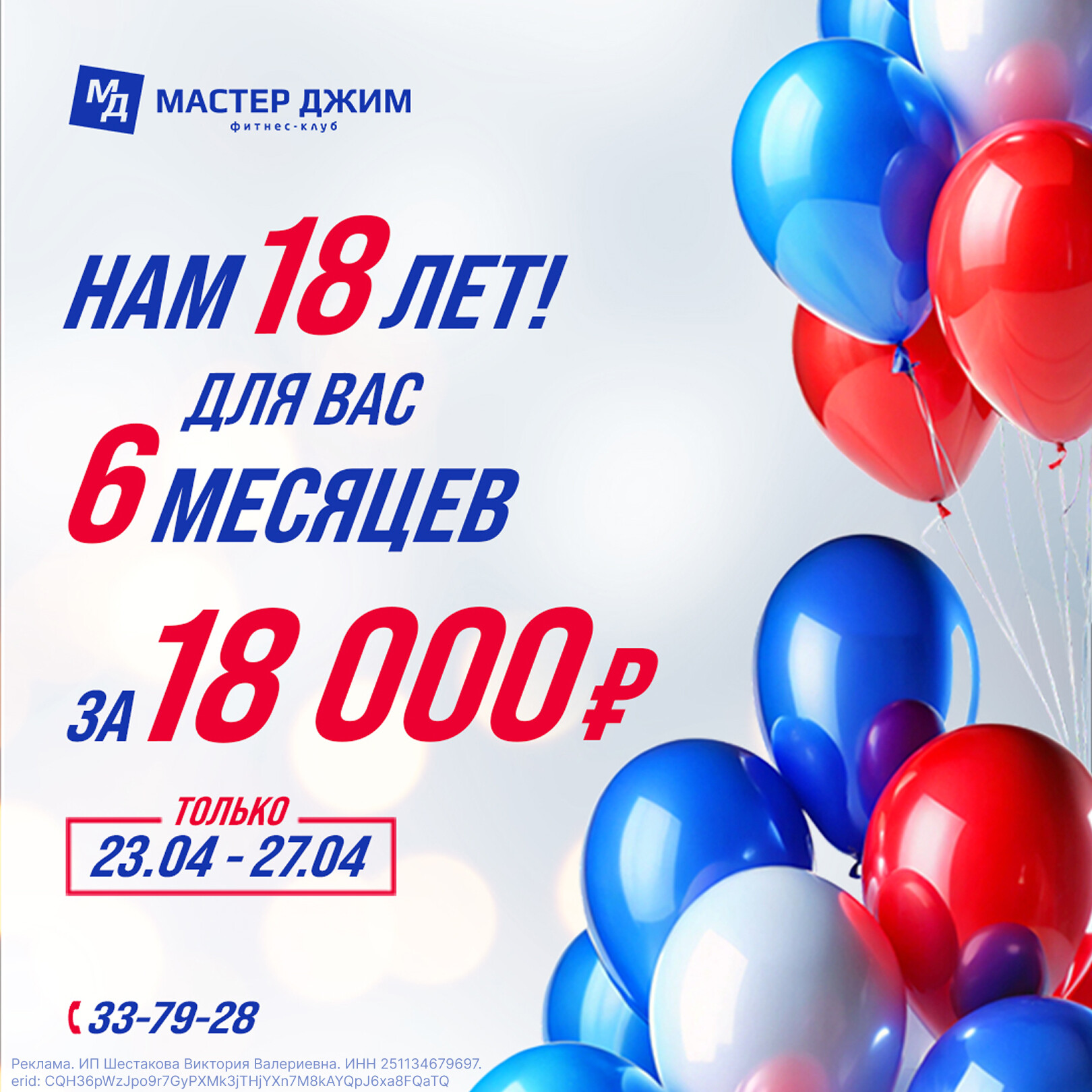 26 апреля наш любимый фитнес‑клуб «Мастер Джим» отмечает своё совершеннолетие!